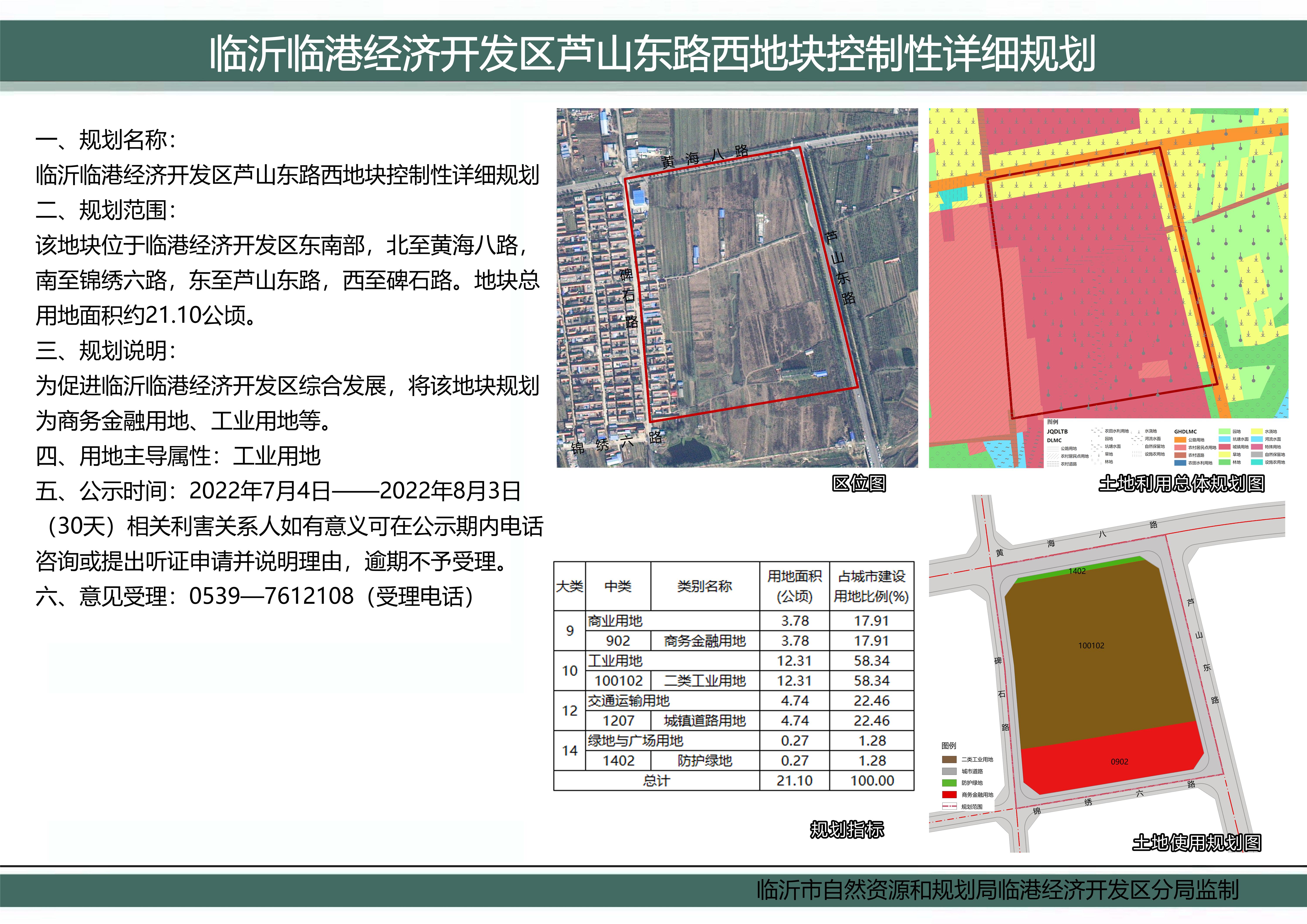 关于《临沂临港经济开发区lg-ps-a-03单元精钢配套生活区控制性详细规划》等7项控制性详细规划